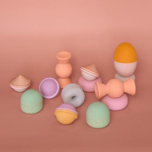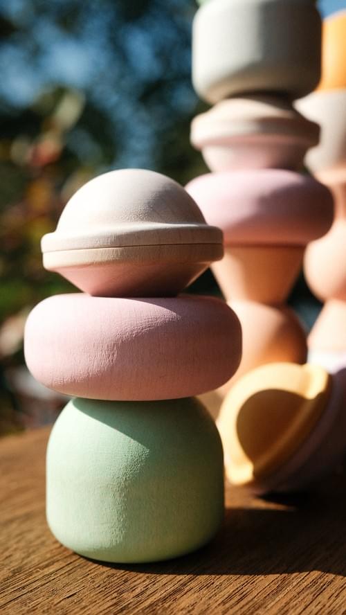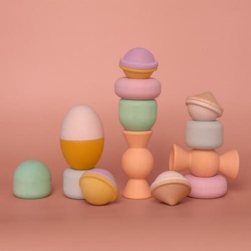 共 13 件柔和粉彩色系木製積木: