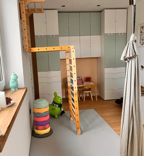 這是一款專為 Upa Family 可變形攀爬三角架 設計的壁掛架,能夠打造出類似瑞典牆(Swedish Wall)的玩法,帶來更多樂趣。