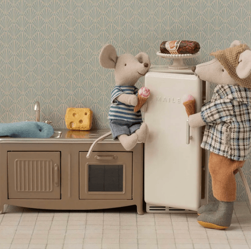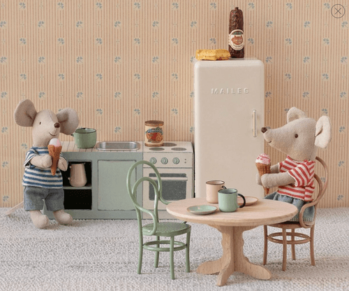 充滿復古風格的迷你冰箱,完美融入 Maileg Mouse Hole Farmhouse,為娃娃屋增添更完整的生活細節。
