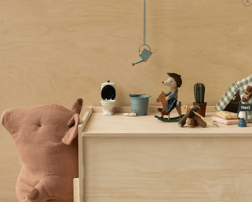 牛仔小鼠穿著迷你藍色牛仔褲、頭巾,還戴著經典的牛仔帽——整裝待發,準備騎上搖搖木馬。這位小小夥伴能陪孩子玩上好幾個小時,展開一段又一段橫越西部荒野的奇妙旅程。
