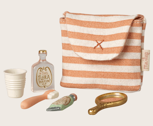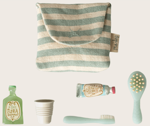 這是一個小巧的收納袋,裡面裝著睡前日常所需的一切。
