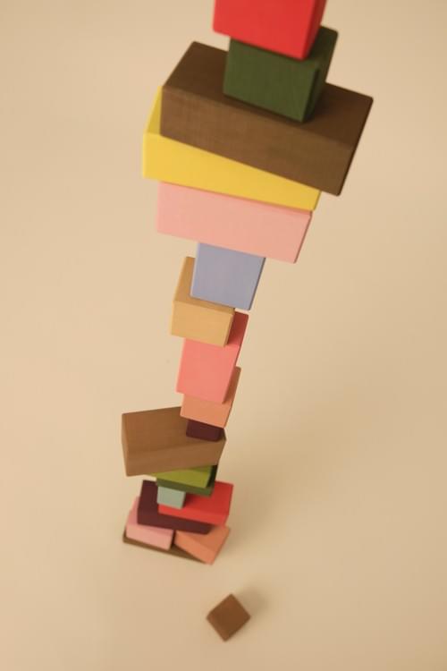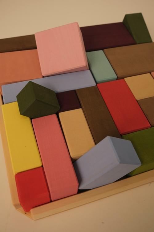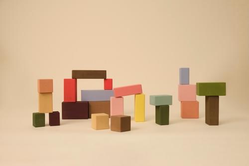 這是一組由立方體與長方體所組成的積木套裝。我們將這款經典玩具的尺寸稍作放大,進而延伸出更多元、更豐富的遊戲可能性。