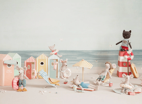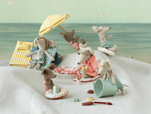在陽光明媚的海灘上,怎麼能少了遮陽時光?這款沙灘陽傘為小老鼠打造剛剛好的休憩空間,讓夏日場景更加完整。