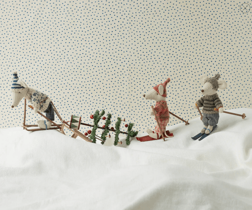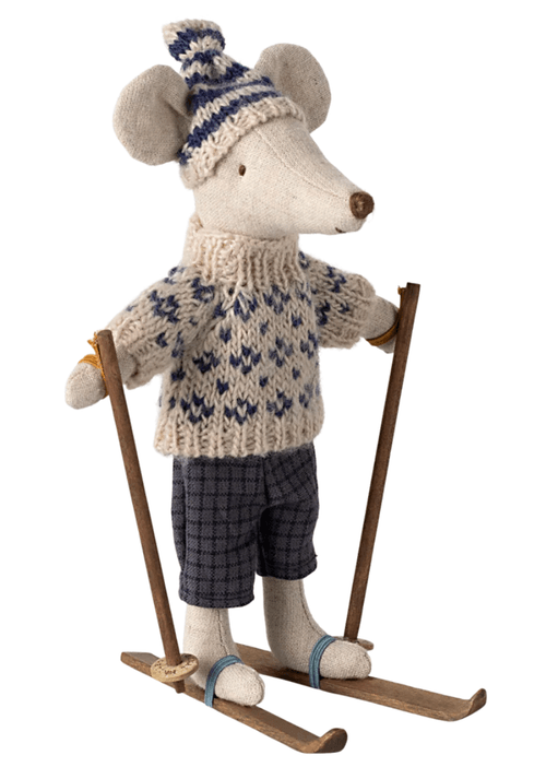 一隻準備在冬季雪地盡情滑行的小老鼠,陪伴孩子展開充滿樂趣的滑雪冒險。每一組都包含一隻穿著溫暖冬裝的小老鼠,以及一組滑雪板與滑雪杖,讓角色扮演更加生動。