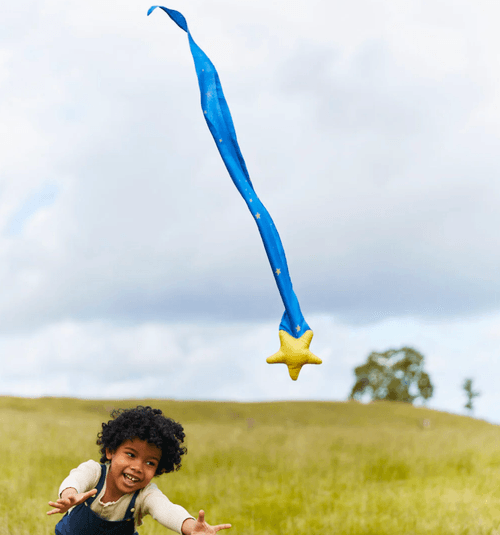 Skytails 是「不會痛的」橡膠球玩具(內部為柔軟填充,外層包覆絲綢),可以抓著尾巴輕鬆投擲,就算被打到也不會受傷。丟出後會在地面彈跳幾下,增加孩子接住的機會,讓遊戲更有趣。