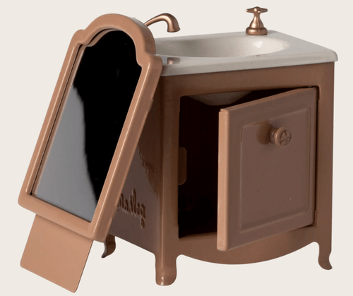 這是任何老鼠小屋浴室中不可或缺的重要家具。洗手台下方設有小型收納櫃,當然也配有一面鏡子。搭配 Maileg 的馬桶與浴缸一起使用,能讓遊戲情境更加完整、豐富。