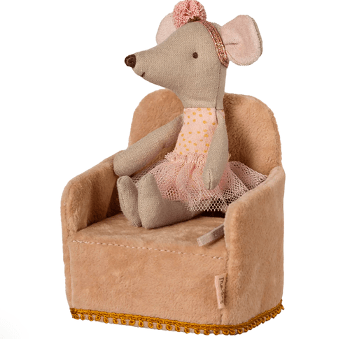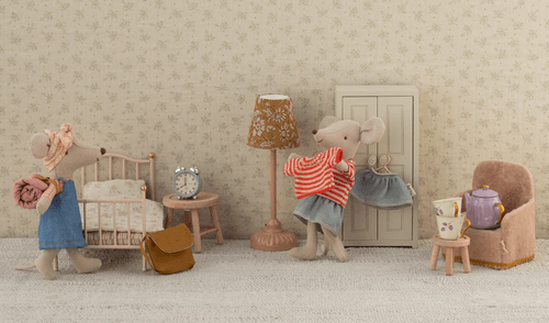 柔霧粉色的摺疊椅,是 Maileg 小老鼠們最舒適的專屬寶座。不論是野餐、陽光午睡還是森林故事時間,這張椅子都能帶來滿滿的溫柔氣氛。輕巧設計,適配 Mouse Hole Farmhouse,展開即可使用,收納也超方便!