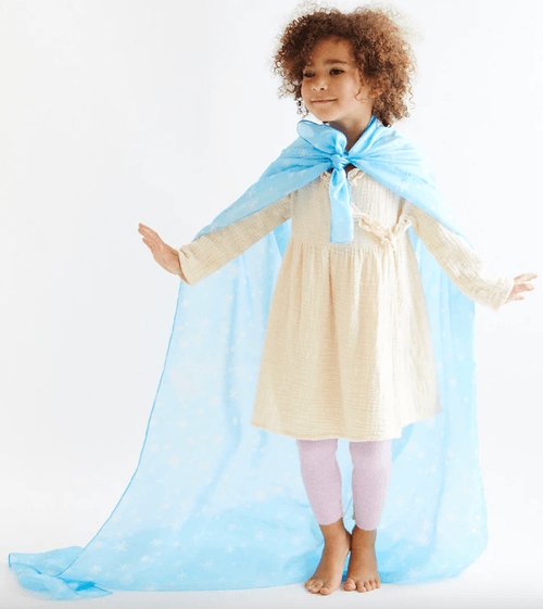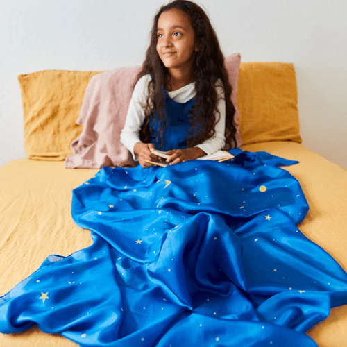 這條超大尺寸的絲巾是孩子夢想冒險的起點。無論是帳篷、舞台布幕、床簾還是飛翔的降落傘,都是最美的背景與道具。