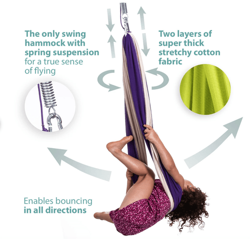 這是市面上唯一具備彈簧懸吊設計的感官鞦韆,可向各個方向彈跳,帶來真正「飛翔般」的感受。