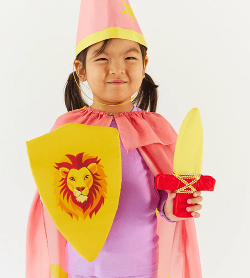 拿起閃亮的寶劍,舉起繽紛的盾牌,小小勇士的冒險故事從這裡展開——是森林裡的和平守護者,還是雲朵上的彩虹騎士?通通由孩子自由想像!