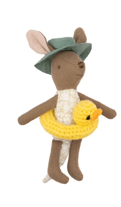 精緻迷你的設計,適合搭配海邊冒險、泳池派對或陽光假期情境。孩子可以替袋鼠準備下水裝備,延伸更多故事玩法,在遊戲中培養想像力與創造力。