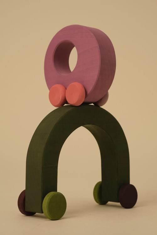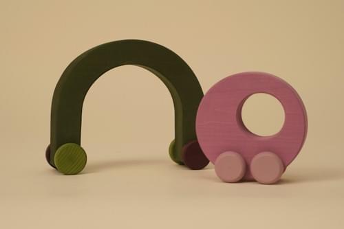 小車的輪子塗上了不同的顏色,就像孩子們穿著不一樣的襪子。