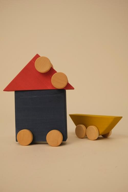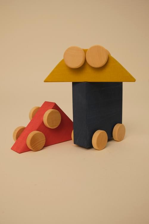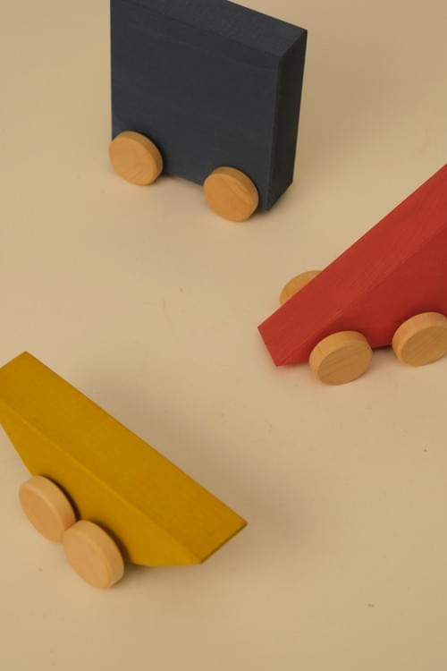 小車以三種無法透過混色產生的基本色上色——紅、黃、藍。