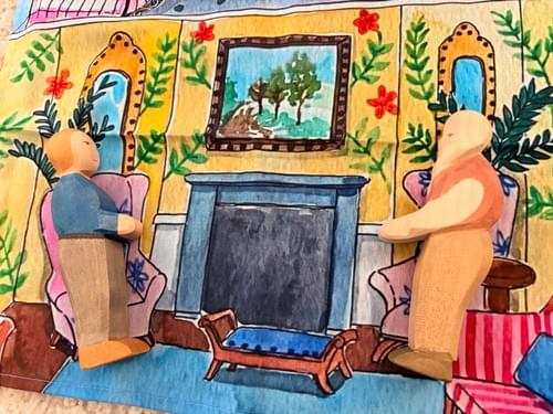 孩子可以透過這塊精美插畫的遊戲布,走進充滿想像的娃娃屋世界。