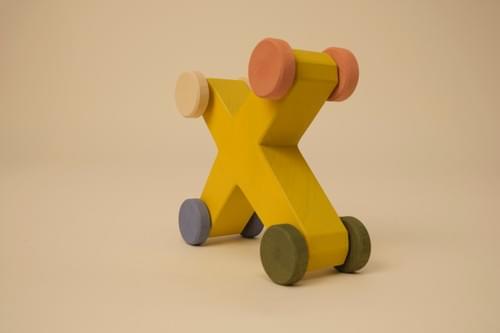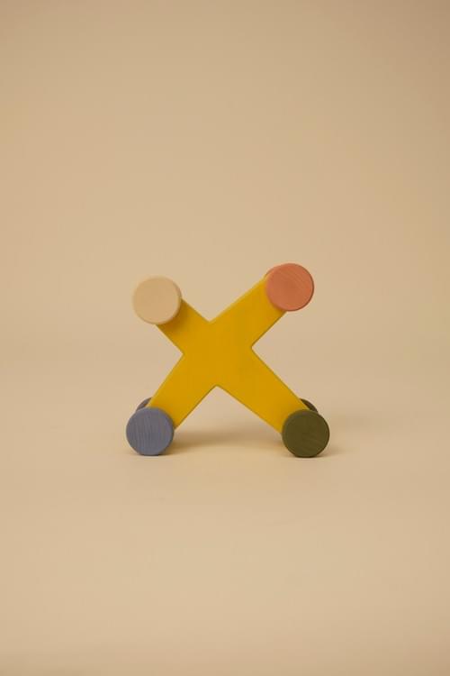 十字造型車(Cross Vehicle)是一款造型如 X 字的特技木製小車。每一個「手臂」上都配有一對輪子,無論從哪一面翻轉,都能繼續前進。讓它在草地、地毯,甚至一疊書上滾動,看著它翻滾、旋轉,充滿動感與驚喜。